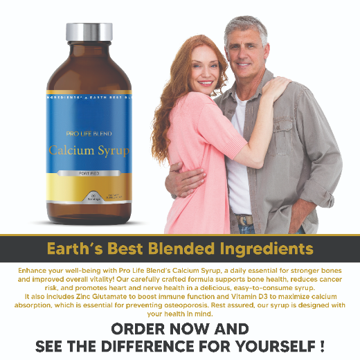 Elevate your health and vitality with Pro Life Blend’s Calcium Syrup, the delicious, easy-to-consume daily supplement designed to support stronger bones, enhance heart and nerve health, reduce cancer risk, and lower blood pressure. Packed with essential nutrients, this syrup provides a convenient and effective way to ensure you’re getting the calcium and vitamins your body needs to stay strong, healthy, and energized.